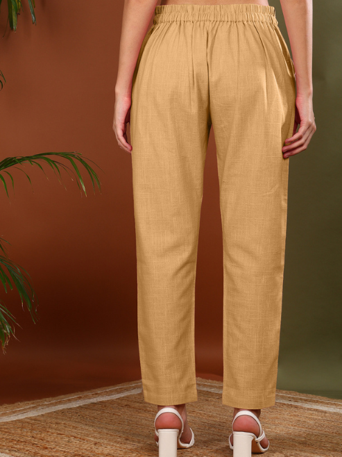 Cotton Slub Solid Regular Fit Casual Trouser Pants