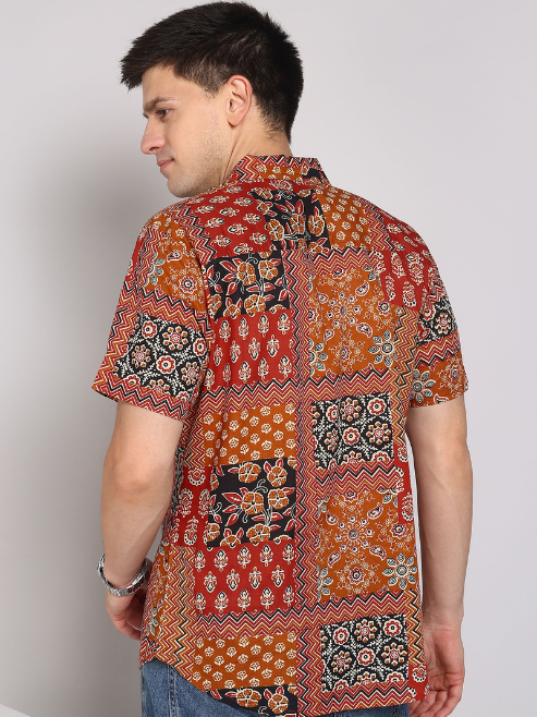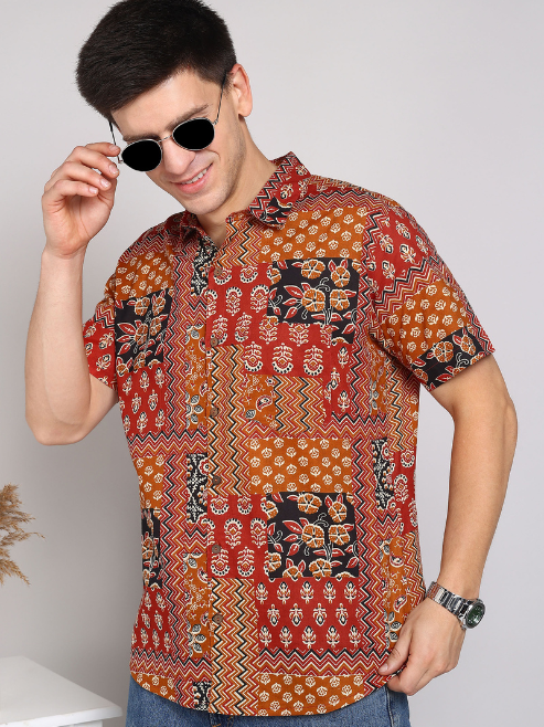 Fashion Plus Store Men's Cotton Warli Print Regular Shirt (Offwhite )