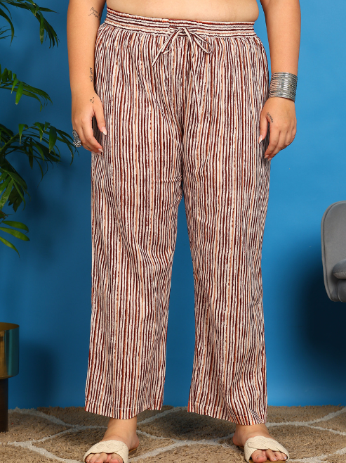 FASHION PLUS STORE Women’s Pure Cotton A-line Floral Print Kurta with Striped Pant & Dupatta V-Neck, 3/4 Sleeves