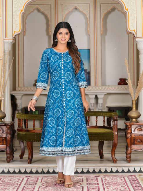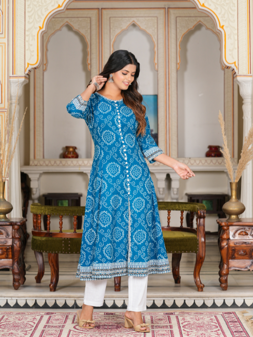 Fashion Plus Store Women leheriya printed Angrakha anarkali kurta