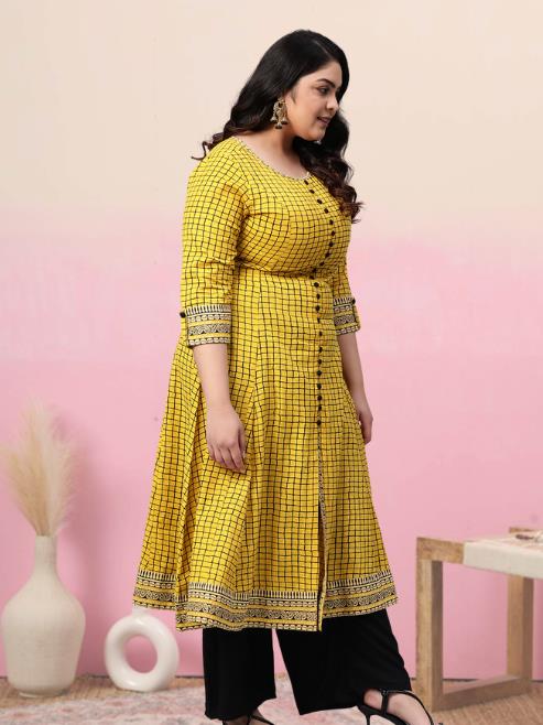 Fashion Plus Store Cotton Blend Floral Print Anarkali Kurta